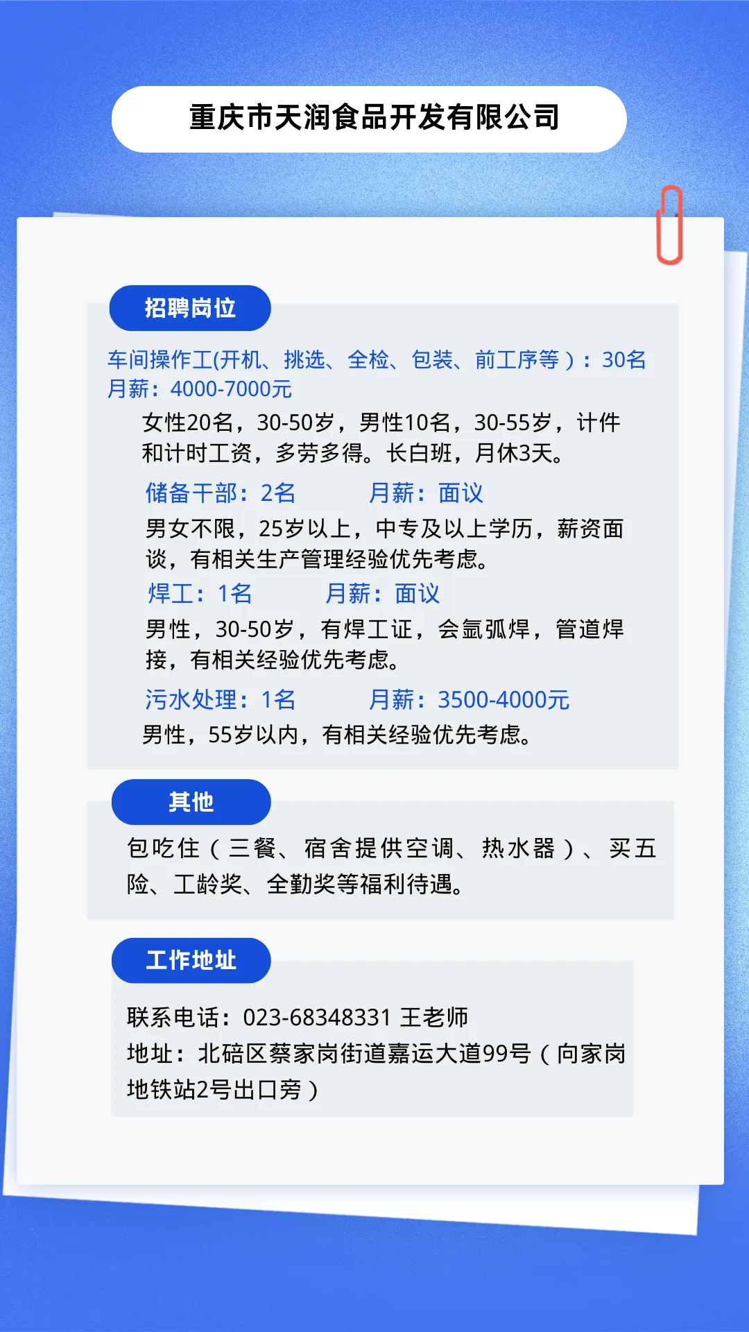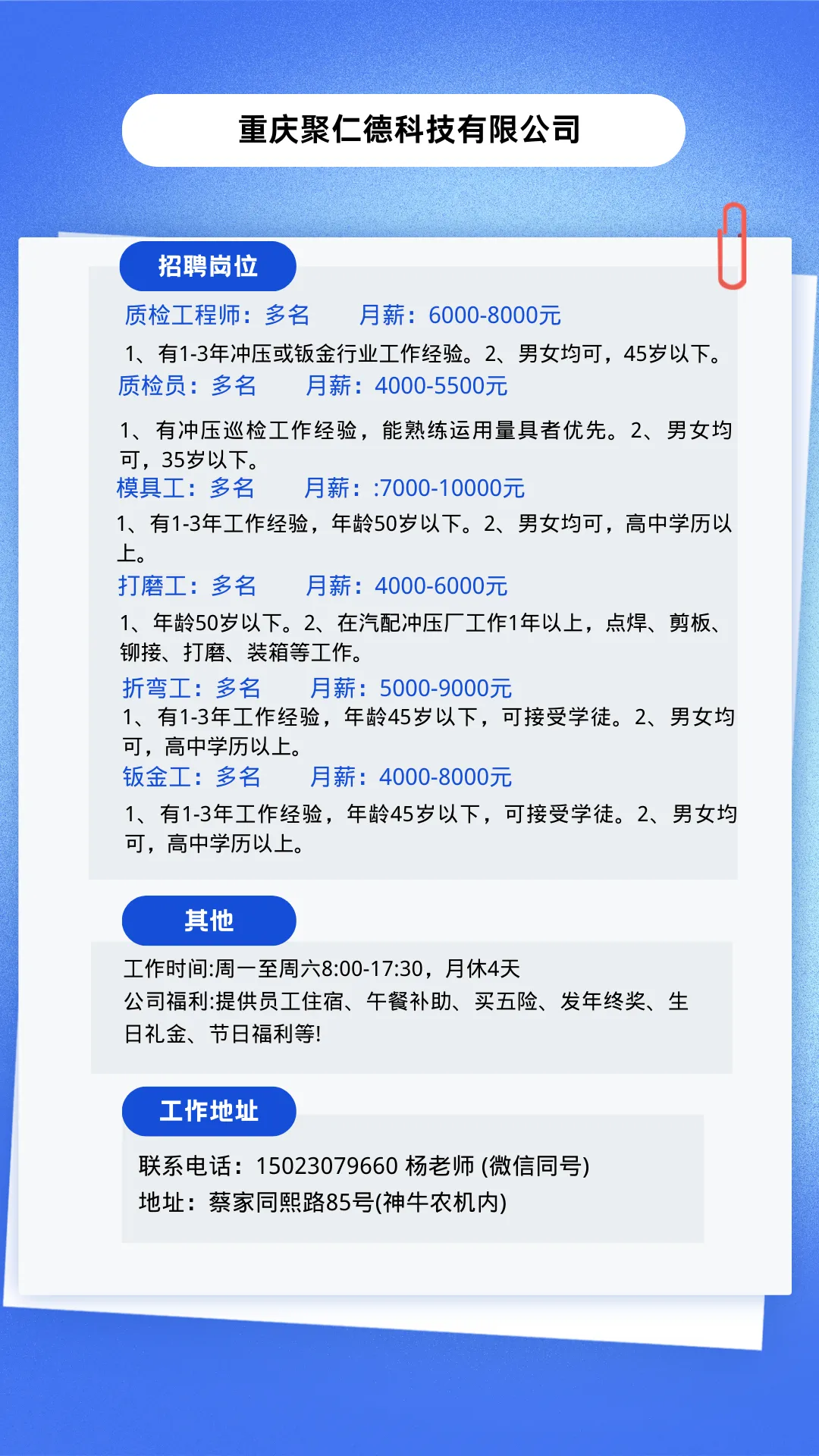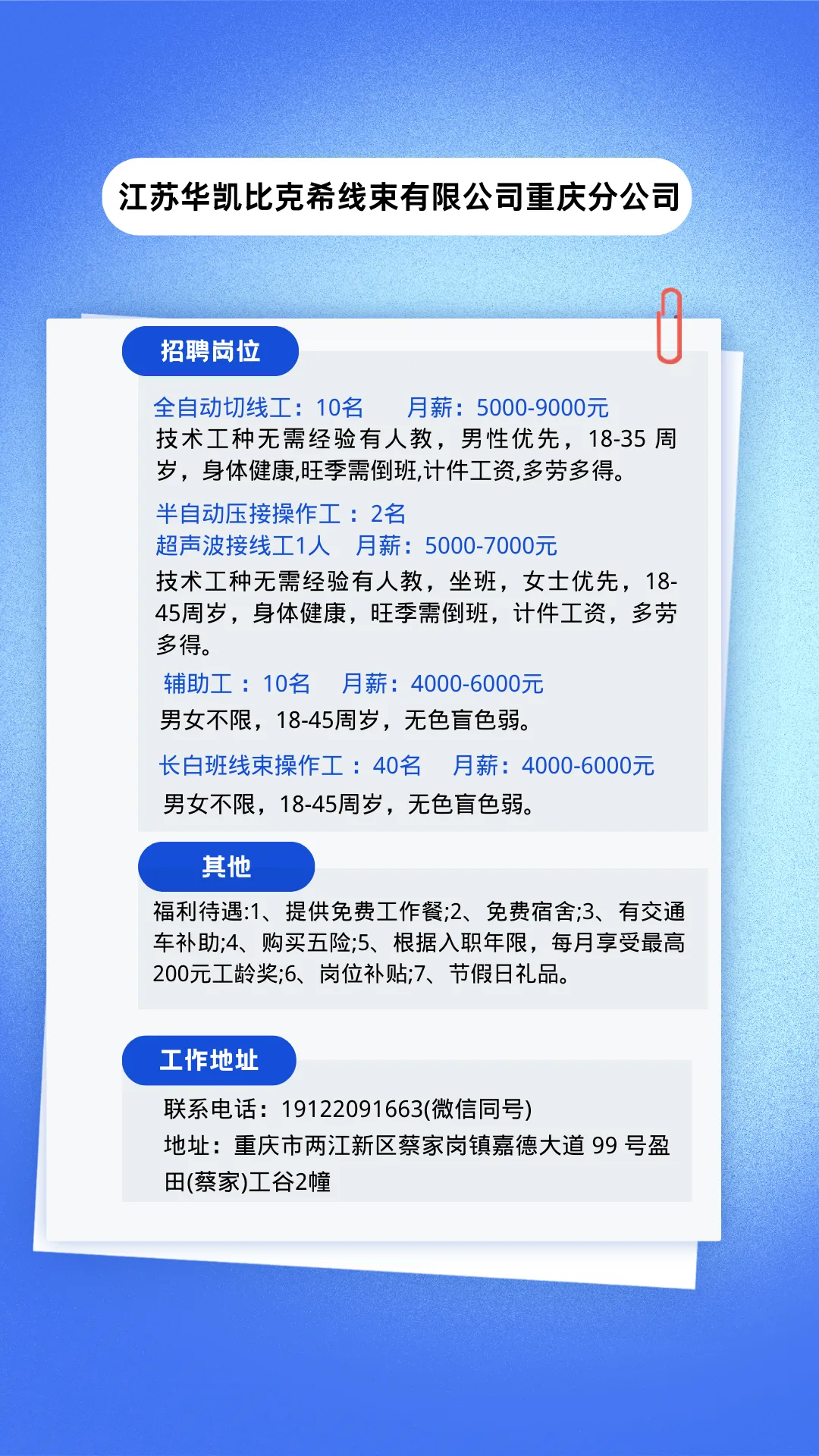 为搭建企业和求职者的友好平台,发挥桥梁纽带作用,每周一固定更新最新的企业招聘信息。欢迎有招工需求的企业和求职者与我们联系。(企业排名不分先后)